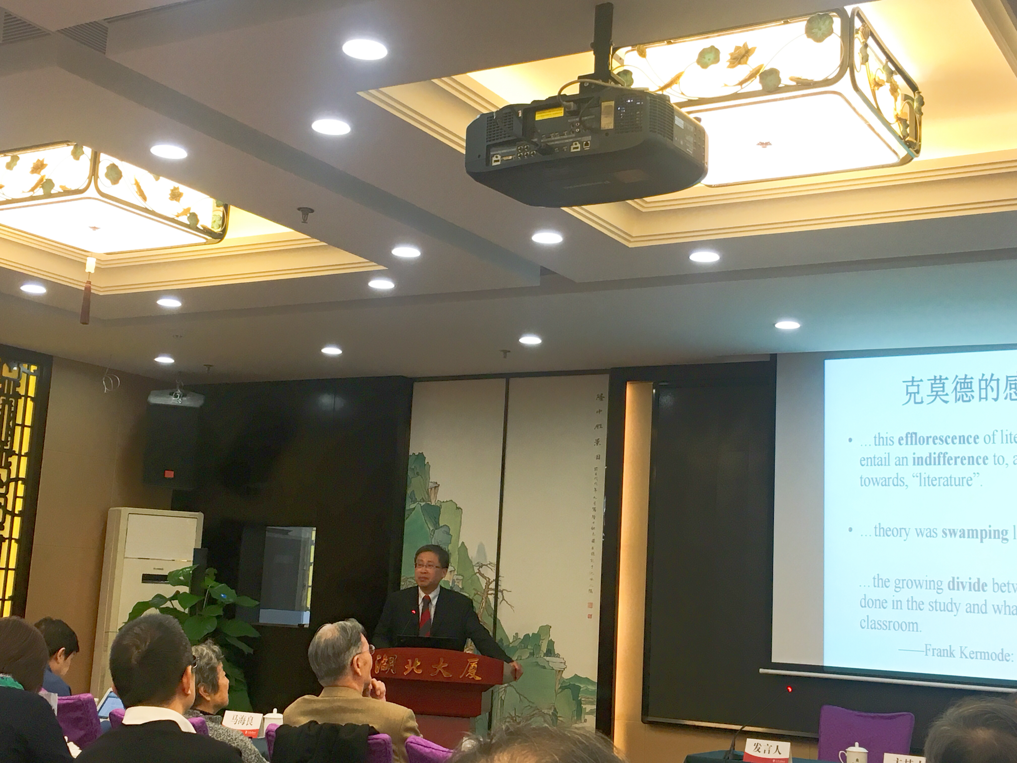 我院殷企平教授、田颖副教授前往参会。其中,殷企平教授于18日上午进行了题为“重塑‘普通读者’”的主旨发言,他对西方学者在新禧年伊始提出的又见“普通读者”的身影提出怀疑,并对过去几十年中轻视乃至敌视普通读者的国际潮流提出批评;他指出,学界要切实回应这种解构主义下的去经典化、去审美化、泛政治化的国际潮流,且当务之急在于揭露去经典化潮流的谬误。殷企平教授的发言,随后引起了在场学者对审美和立场问题的热烈讨论。
