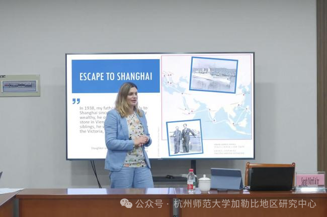 2025年10月16日下午,杭州师范大学加勒比地区研究中心在恕园校区举办“中国-加勒比文明互鉴论坛”系列学术讲座,邀请奥地利林茨艺术大学首席研究员、纽约犹太历史中心访问学者莎拉·尼姆菲尔(Sarah Nimführ)博士担任主讲,外国语学院院长周敏教授主持。讲座以犹太侨民的“流散记忆”(Travelling Memory)为主题,带领师生展开一场横跨欧洲、加勒比与中国的历史对话。