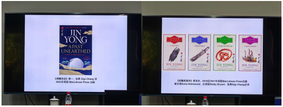 张菁老师提炼出金庸英译面临的四大核心挑战:一是近百万字的连载体量,要求译者具备持久的耐力与连贯的风格把控;二是半文半白的古典语言,需在现代英语中还原其典雅韵味;三是武打场面推动叙事的特点,必须将抽象的武术概念转化为具象的视觉想象;四是十多部影视改编带来的先入为主印象,需要译本建立独特的文学辨识度。为此,她分享了“拆分、重组、删减、增加”的翻译技巧,强调译者如同“导演”与“编剧”,需在尊重原作的基础上进行创造性转化。