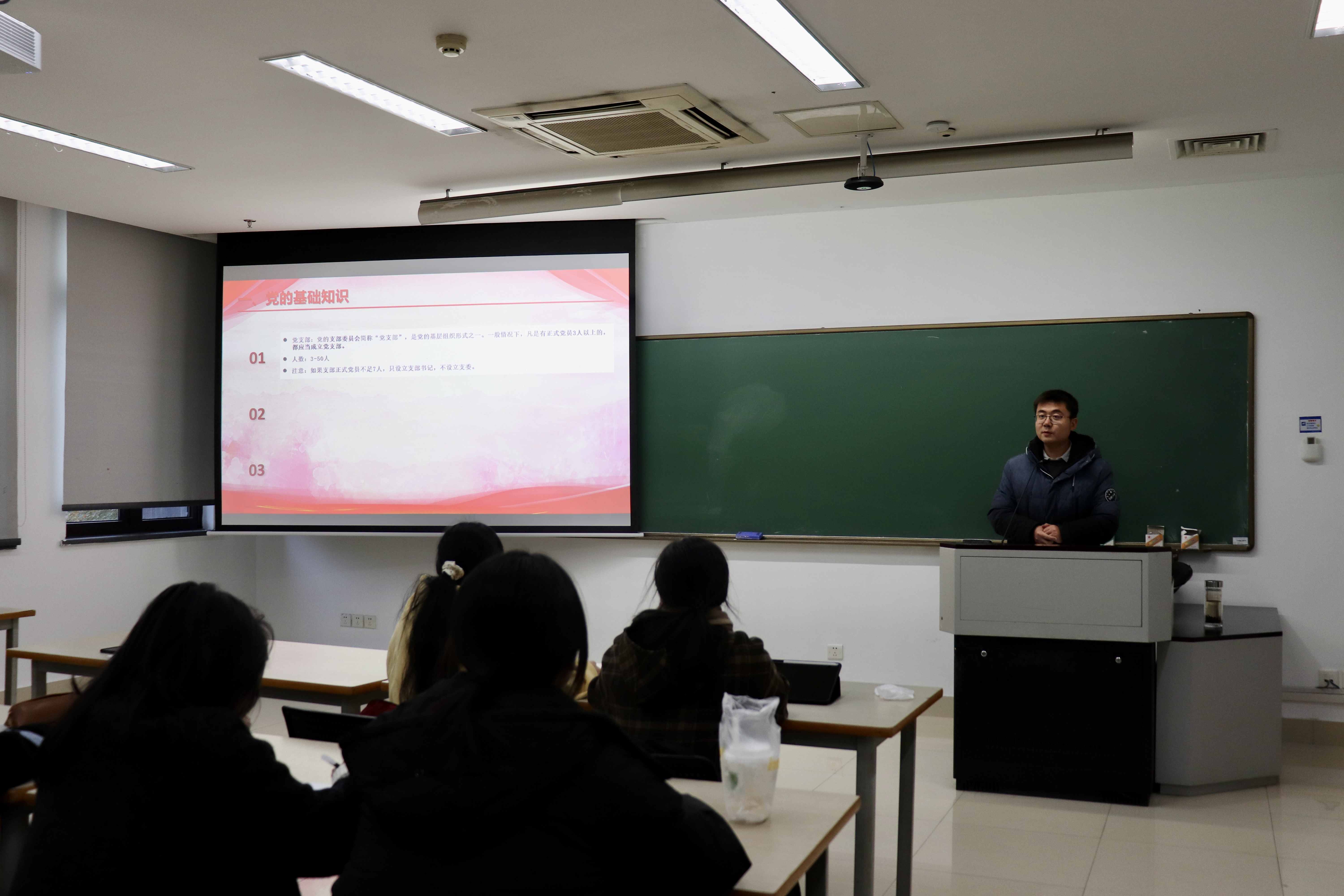 同日下午,郑航航老师主持举行了本期发展对象培训班开班仪式。开班仪式在庄严的国歌声中正式开始,班主任郑航航老师宣布开班,并向全体学员表示欢迎和祝贺。随后培训班学员代表兼培训班班长阮琪琪在发言中分享自己申请加入中国共产党的心路历程和未来的行动准备,表达了践行初心、锤炼党性、牢记宗旨以及积极向党组织靠拢的决心,展现了本期党校学员的昂扬风貌。最后,郑航航老师介绍了本次党校培训的课程安排、党的基础知识,并强调了党课纪律和结业考核方式。最后,开班仪式在热烈掌声中圆满结束。