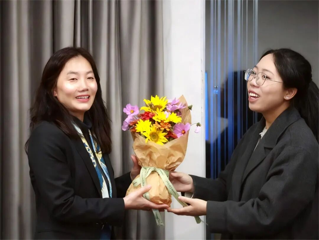 活动尾声,学生代表徐艺珩为于老师送上了一份特别的礼物——一束来自学校劳动花海教育基地、由师大学子亲手栽种的鲜花,以馥郁花香致谢这场干货满满的成长分享。