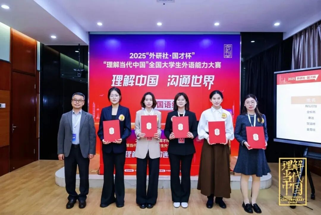2025年12月8日,2025“外研社·国才杯”“理解当代中国”全国大学生外语能力大赛全国总决赛在北京圆满落幕。我院学子再创佳绩,共获国家级奖项7项,包括:英语组短视频赛道全国金奖1项、银奖1项,综合能力赛道全国银奖1项、铜奖2项,多语种赛道全国金奖1项、银奖1项,刷新学院历史最好成绩!