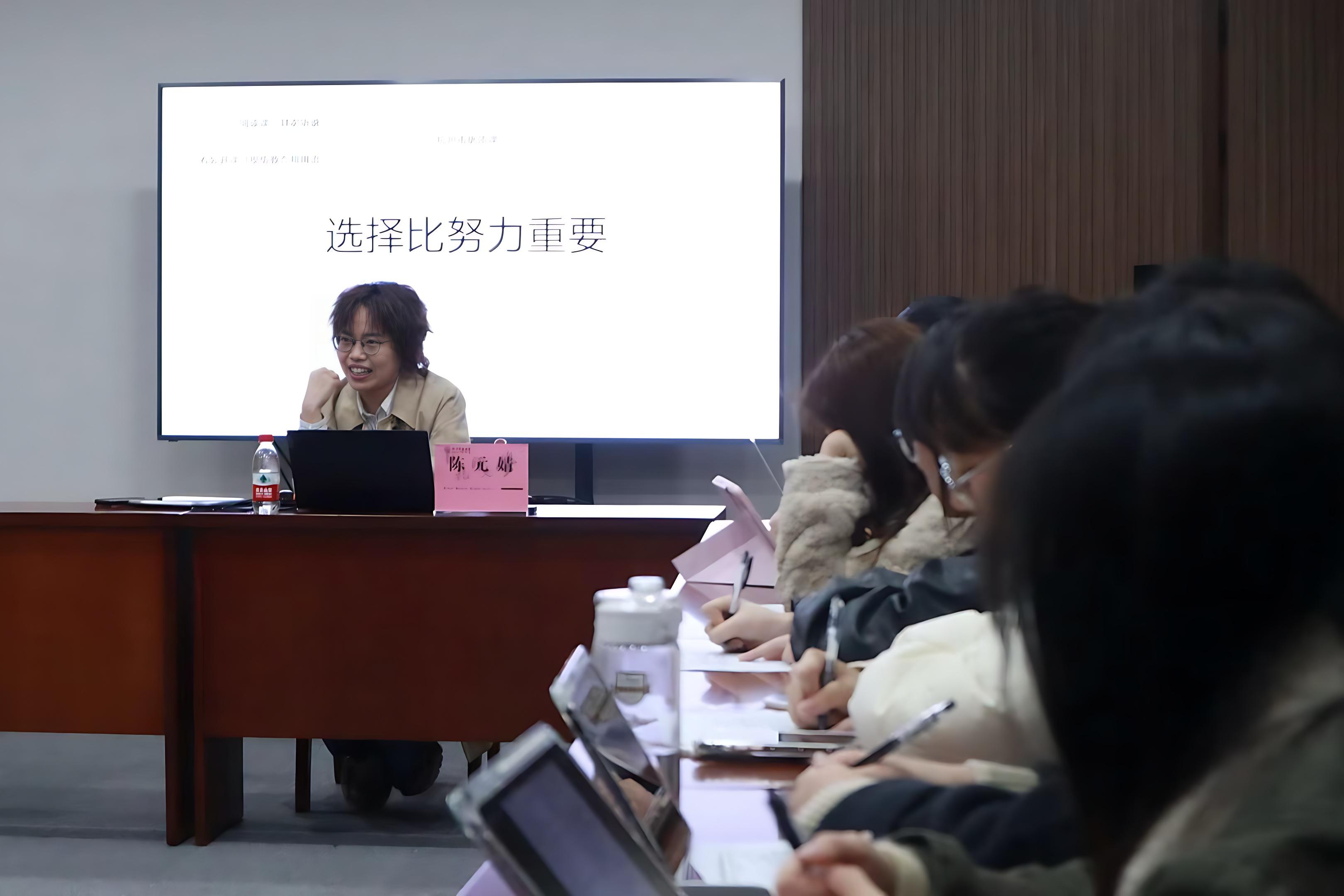 现任天元公学(西站)英语教师的陈元婧学姐以“英语非师范生考编实战经验分享”为主题,从考编信息筛选、备考方向选择、完整考编流程及心态调节四大方面展开分享。她梳理了考编信息获取渠道,打破备考误区,为不同年级学子给出针对性建议。她强调备考方向选择的重要性,分享小红书、优质公开课等备考资源,讲解教学技能打磨技巧。陈元婧学姐还详细拆解了考编从报名、笔试面试到录用体检的全流程细节,结合教学心得寄语学子放平心态、享受教育过程。