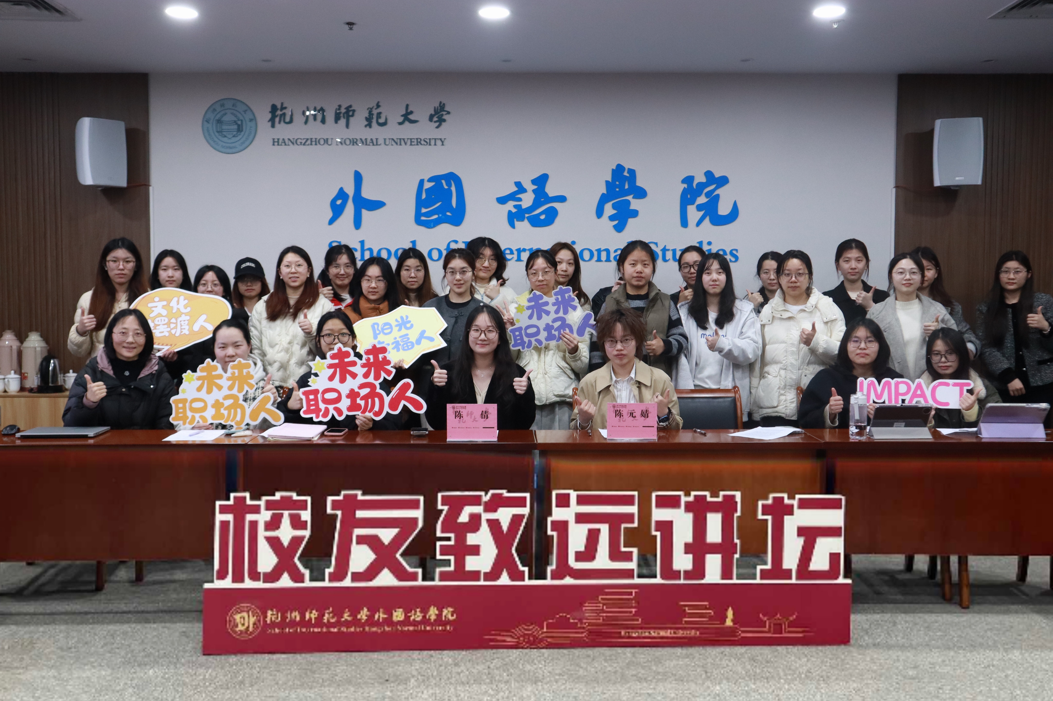2026年3月27日晚,杭州师范大学外国语学院“IMPACT学生领导力提升计划”之“学长学姐考编谈”专题讲座在仓前校区恕园19号楼205教室顺利举行。本次讲座特邀两位优秀校友——2021届陈元婧与2022届陈倩,以自身实战经历为蓝本,为学子们带来了一场干货满满的英语非师范生考编经验分享会。