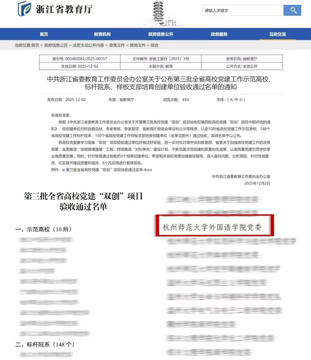 近日,浙江省教育厅公布了第三批全省高校党建“双创”项目验收通过名单,我院党委顺利通过全省高校党建工作标杆院系项目验收。