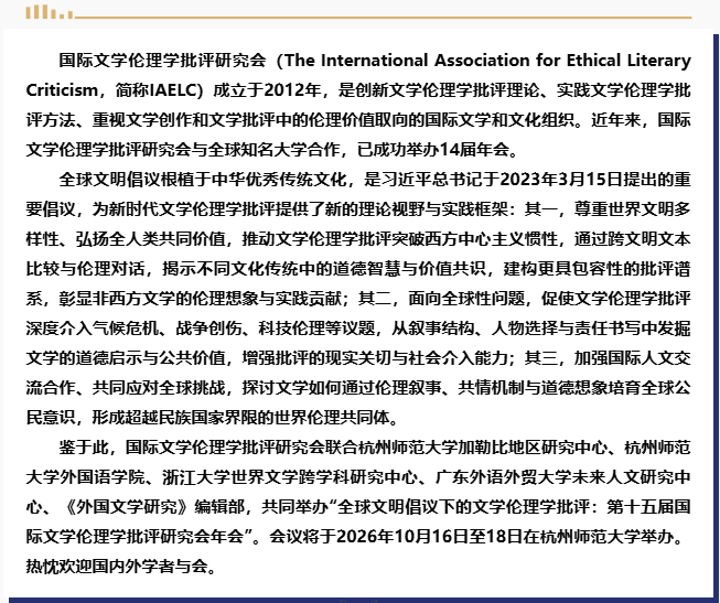 - 会议通知 || 全球文明倡议下的文学伦理学批评: