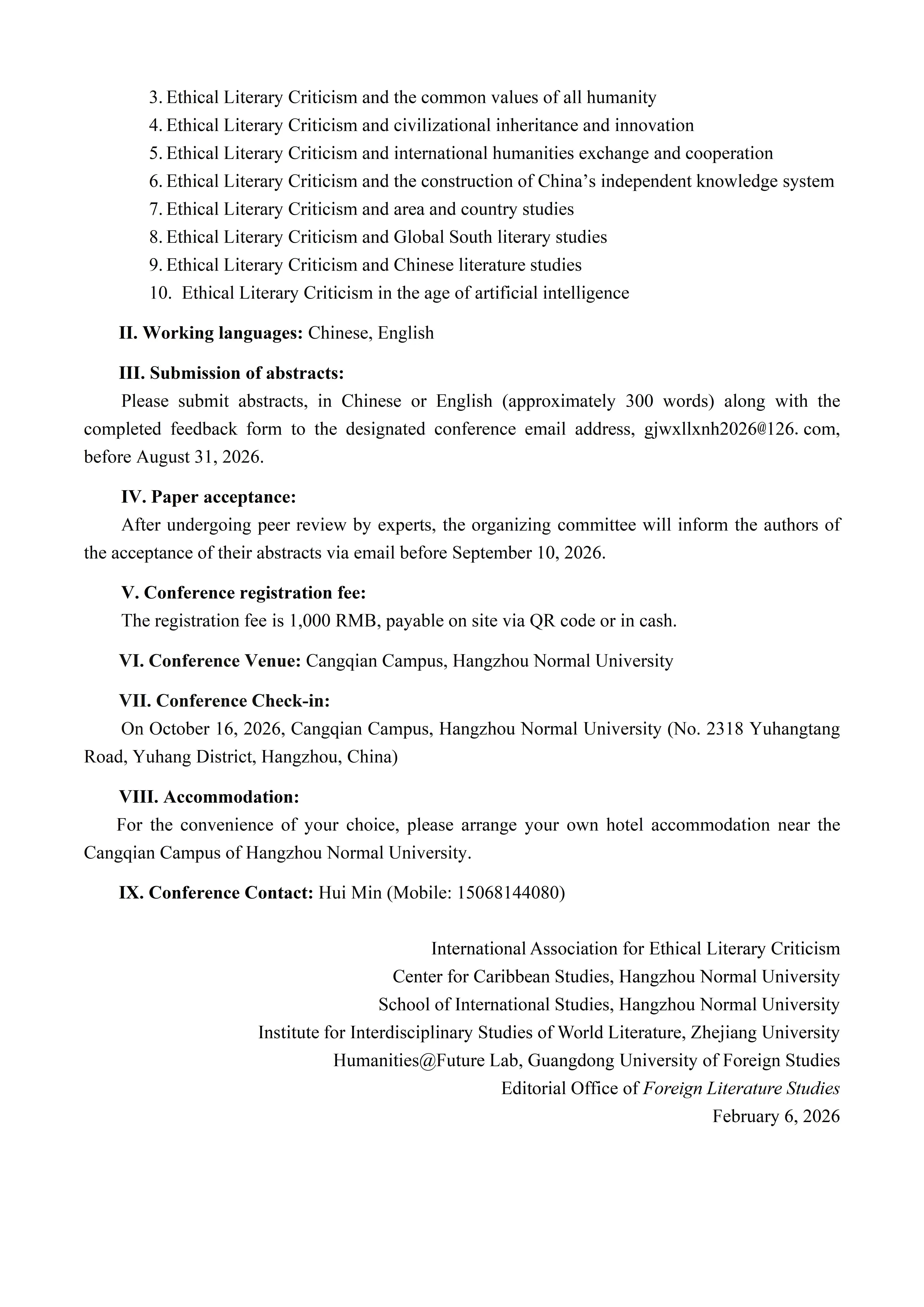 Feedback Form:The 15th Convention of the International Association for Ethical Literary Criticism